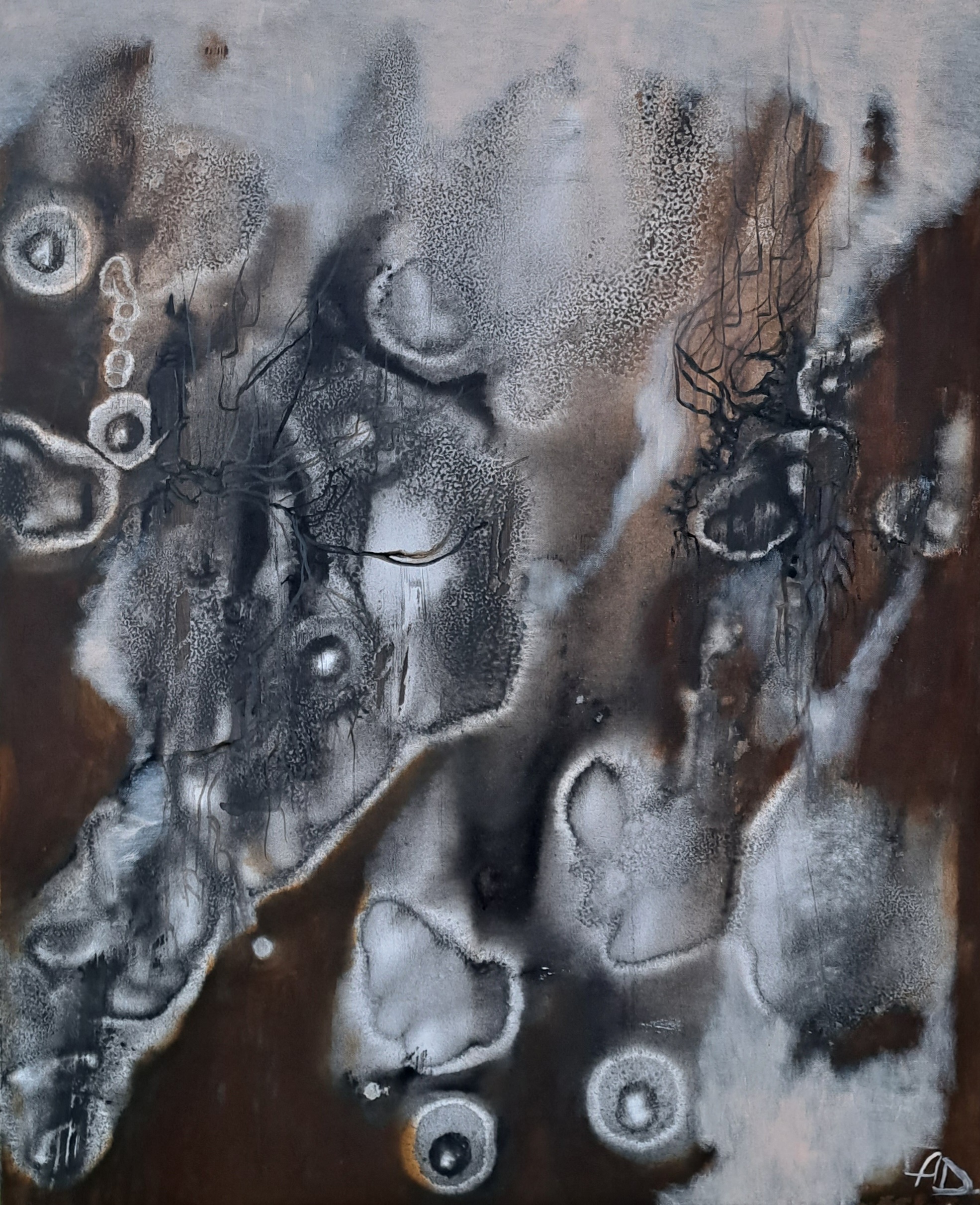 Iš kūrinio dvelkia efemeriška, paslaptingumu alsuojanti aura. Vidinis žmogaus pasaulis yra slėpinys, neaprėpiamas, neapibrėžiamas, talpinantis savyje begalybę atspalvių. Todėl drobėje abstrahuotas siužetas ir laisva kompozicija. Nutekėję dažai lyg laiko gijos susilieja, nešdamos žmogų nuo tamsos lig šviesos. Potėpių perėjimai ir neapibrėžtos formos simbolizuoja žmogaus asmenybės daugiasluoksniškumą.